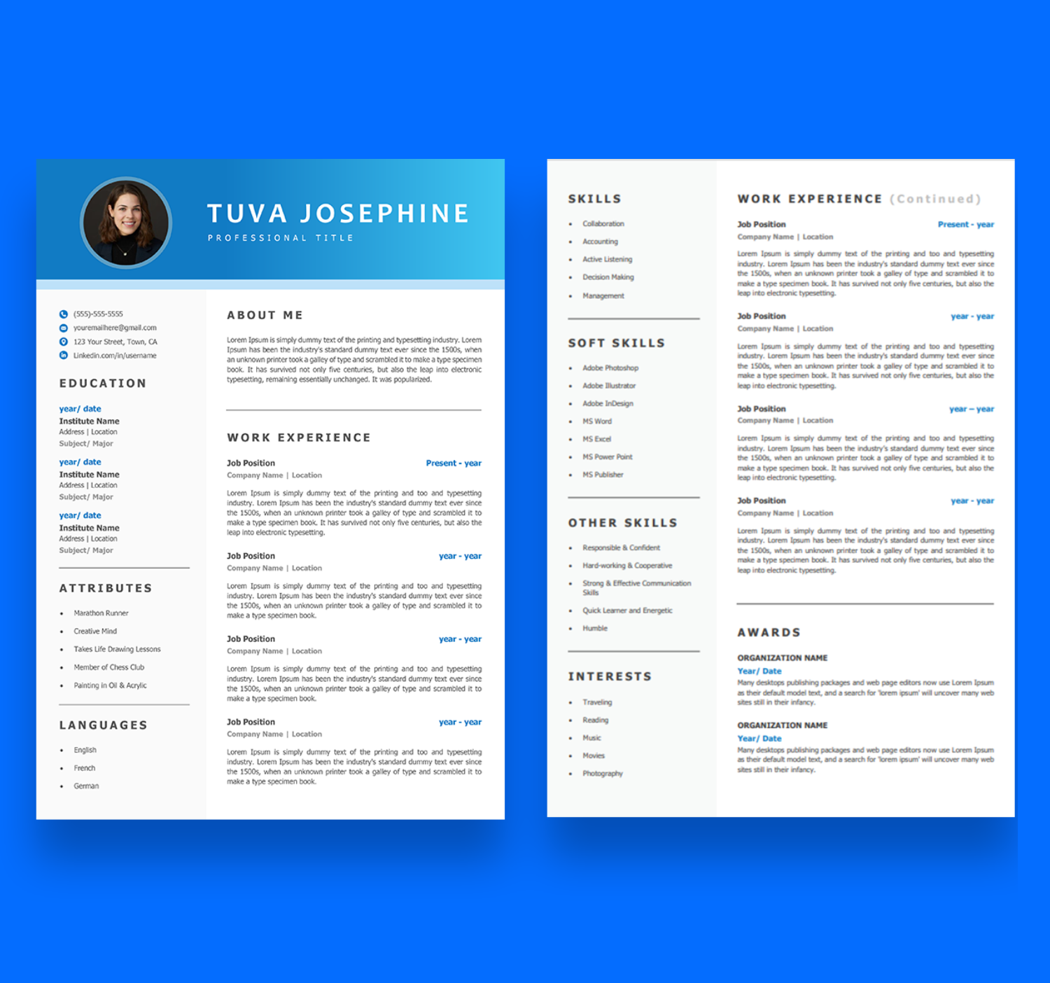 Upgrade to our professional tested resume/CV template that follow the exact steps and looks that employers are looking for to supercharge your chances of an interview and position both online and offline.